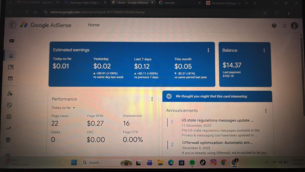 1x payment received Nigeria 🇳🇬 Adsense account available