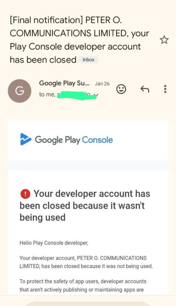 2020 Closed Google Play Console Account