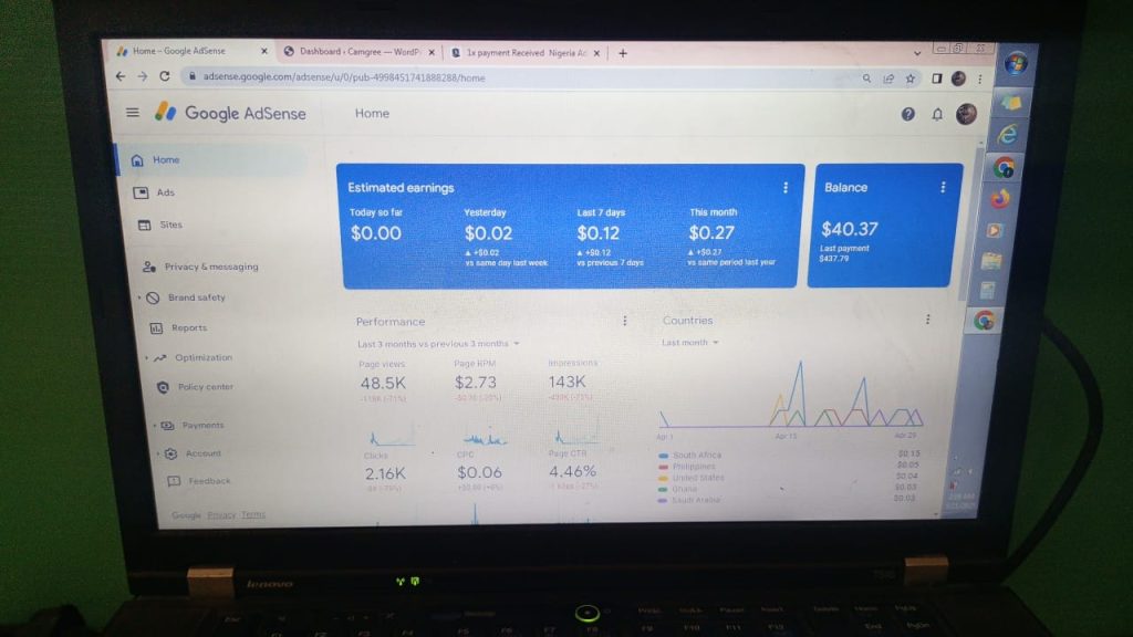 2x payment received Naija AdSense account✅.com domain✅$40 in balance✅ Nvr used for Adx✅No ads limit history✅URL for a ready buyer.