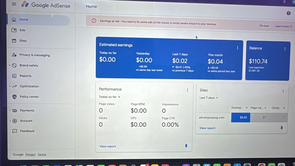 3x payment received Naija Adsense available ($110 in balance)