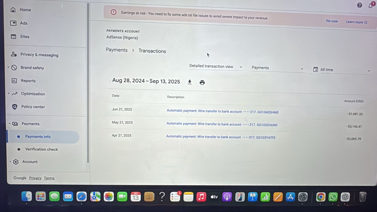 3x payment received Naija Adsense available.com domainHad -360$ deducted in the pastUsed for adxAd manager working fine