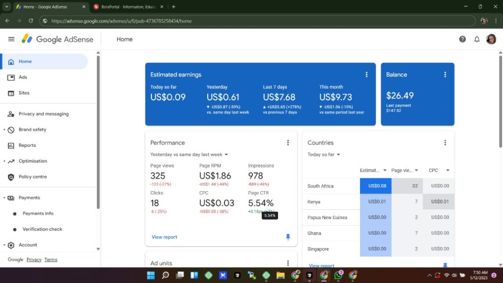 40x Nigerian AdSense available. No limit, Adx not used. $90k+ received. .com domain, 300+ daily traffic.