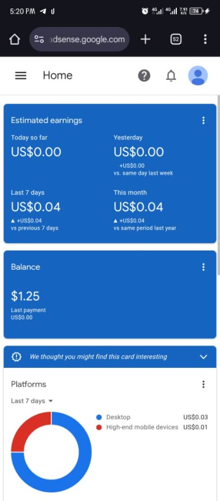 6years Unverified Naija Adsense account available for sale