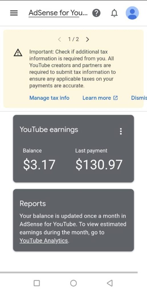 *Fully verified YouTube adsense account available for sale without CHANNEL**1X Payment Received**3.17 in Balance*