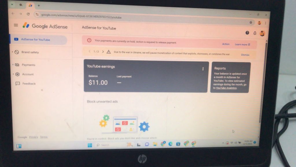 Wt Unverified Adsense ready for identification verification with 11 dollars inside